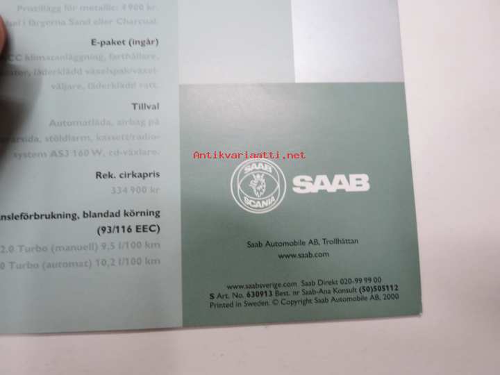 Saab 9-3 Cabriolet Special edition -myyntiesite / brochure