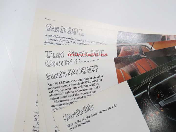 Saab 99L, 99L Combi Coupé, EMS, 99, 96 V4, 95 V4 mallivuosi 1975 -myyntiesite / sales brochure