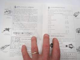 | Saatavilla | 1 kpl | | Julkaisuvuosi | 1959 | | Sivuja | 4 | | Kunto | K3 | | Sidonta/painoasu | Pienpainate | | Kielet | Suomi |
