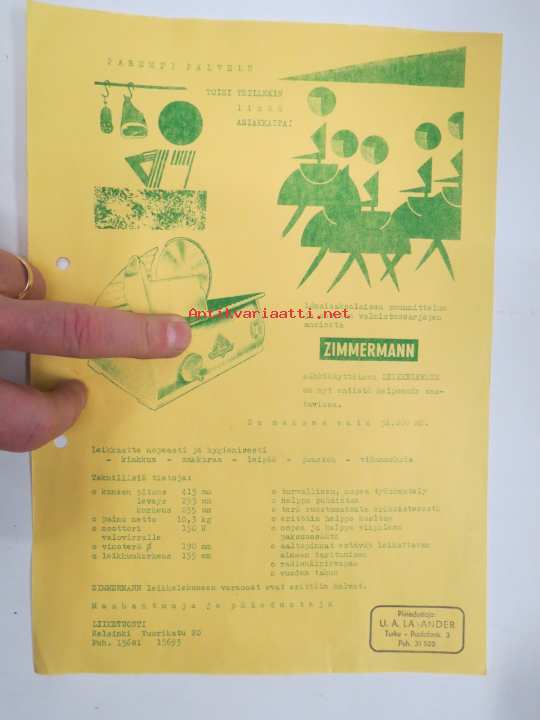 Zimmermann leikkelekone -myyntiesite / brochure