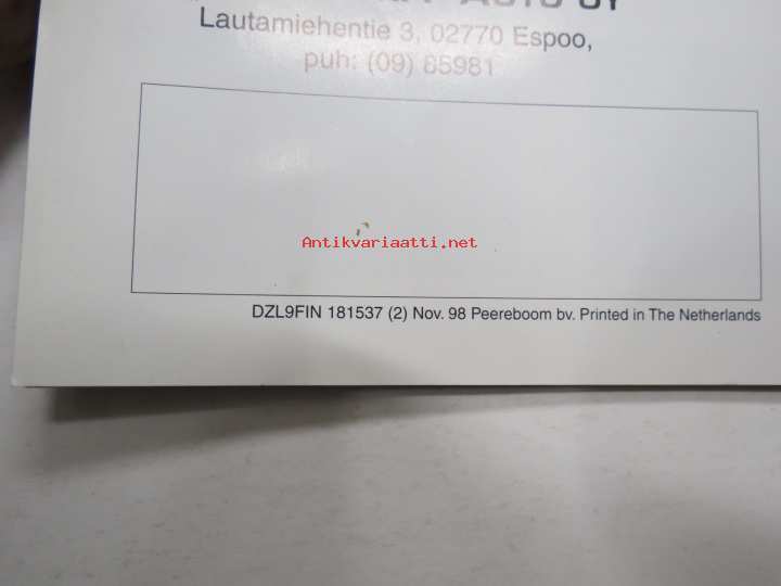 | Saatavilla | 1 kpl | | Julkaisuvuosi | 1998 | | Sivuja | 30 | | Kunto | K3 | | Sidonta/painoasu | Pienpainate | | Kielet | Suomi |