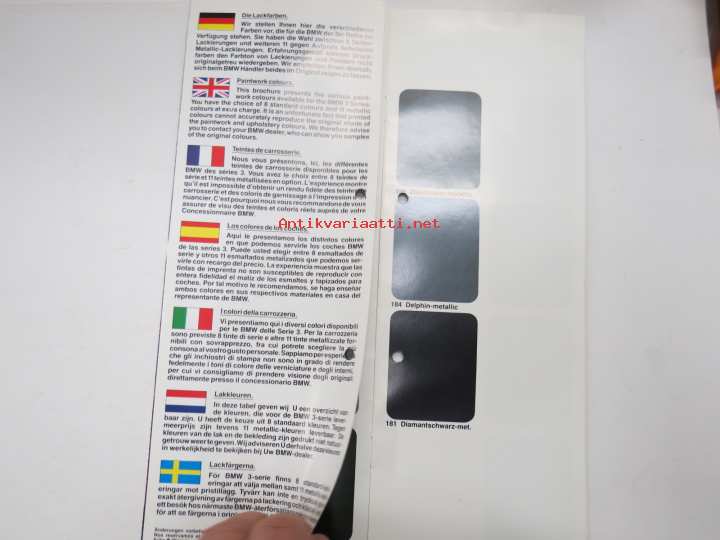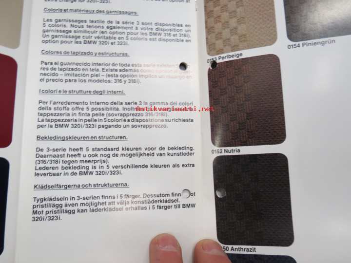BMW 316, 318i, 320i, 323i 1984 Farben / Polster - Colours and uphlostery - Färger och klädslar -värimallit esite