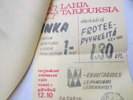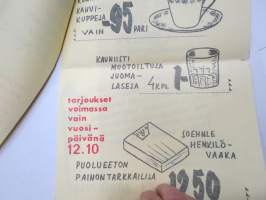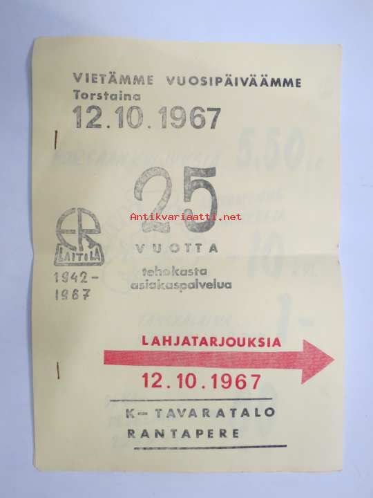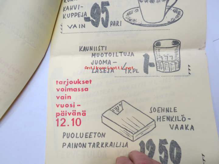| Saatavilla | 1 kpl | | Julkaisuvuosi | 1967 | | Sivuja | 5 | | Kunto | K2 | | Sidonta/painoasu | Pienpainate | | Kielet | Suomi |