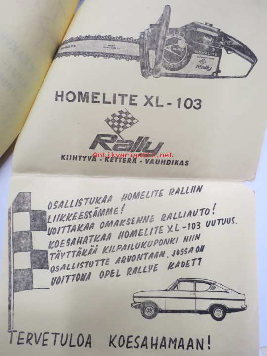 E. Rantapere Laitila, 12.10.1967 25-vuotispäivän tarjoukset - Homelite XL-103 Rally / kilpailu, palkintona Opel Kadett Rallye -mainos / ad