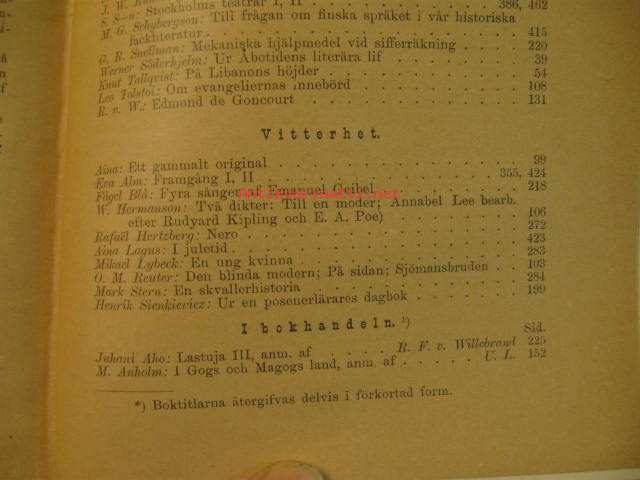 | Saatavilla | 1 kpl | | Julkaisuvuosi | 1896 | | Sivuja | 498 | | Painos | 1 | | Kunto | K3 | | Sidonta/painoasu | Sidottu (kovak.) | | Kielet | Ruotsi |
