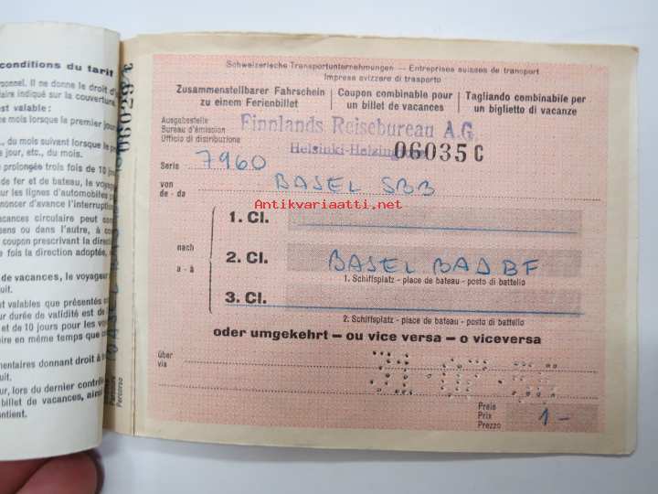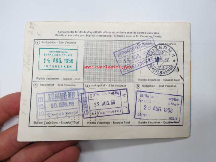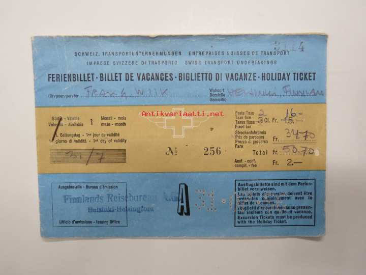 Schweitz Transportunternehmungen / Swiss Transport Undertakings - Ferienbillet / Holiday ticket A 256, 1956 -rautatielippu / railway ticket