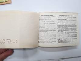 | Saatavilla | 1 kpl | | Julkaisuvuosi | 1956 | | Kunto | K2 | | Sidonta/painoasu | Pienpainate | | Kielet | Ranska, Saksa, Italia, Englanti |