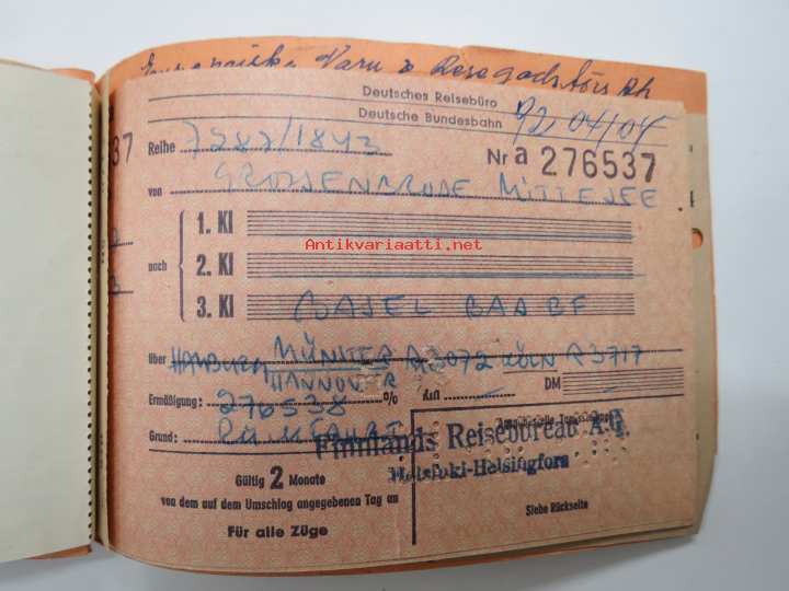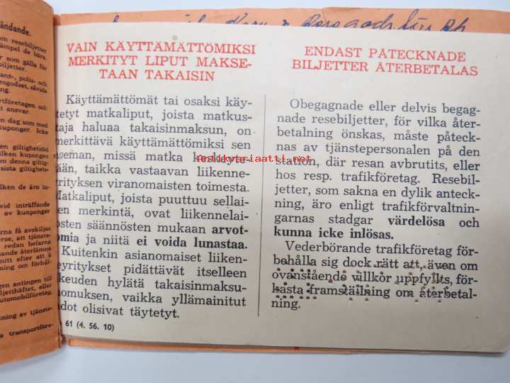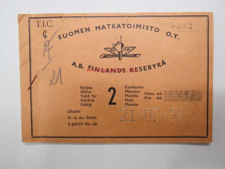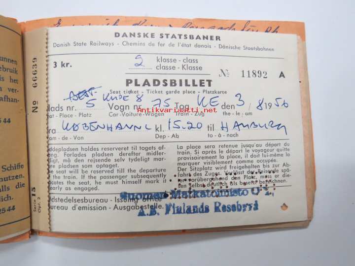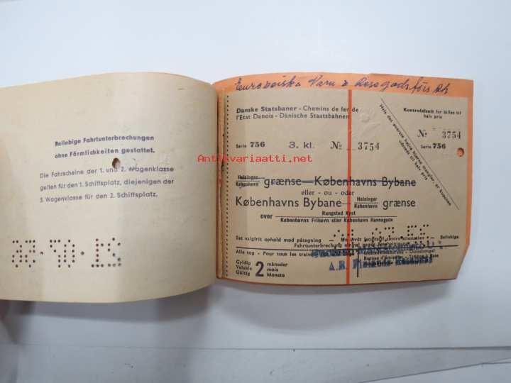 Suomen Matkatoimisto 3112, Tanska, Ruotsi matkalippuja -rautatielippu / railway tickets