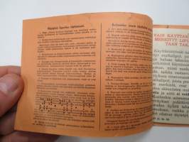 | Saatavilla | 1 kpl | | Julkaisuvuosi | 1956 | | Kunto | K2 | | Sidonta/painoasu | Pienpainate | | Kielet | Suomi, Ruotsi, Englanti, Saksa, Ranska |