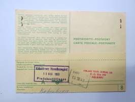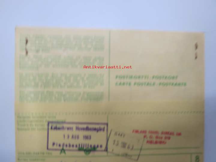 | Saatavilla | 1 kpl | | Julkaisuvuosi | 1963 | | Kunto | K3 | | Sidonta/painoasu | Pienpainate | | Kielet | Suomi, Ruotsi, Saksa, Ranska |