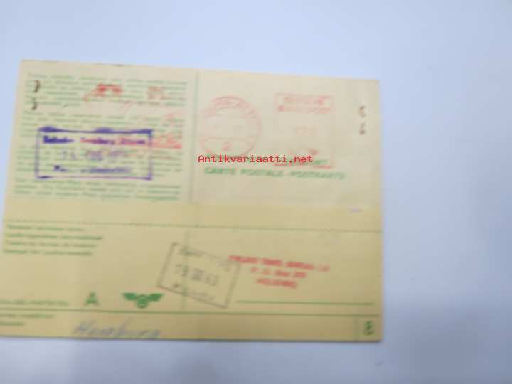 | Saatavilla | 1 kpl | | Julkaisuvuosi | 1963 | | Kunto | K3 | | Sidonta/painoasu | Pienpainate | | Kielet | Suomi, Ruotsi, Saksa, Ranska |