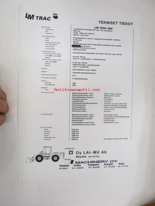 LM Trac 680 -myyntiesite / sales brochure