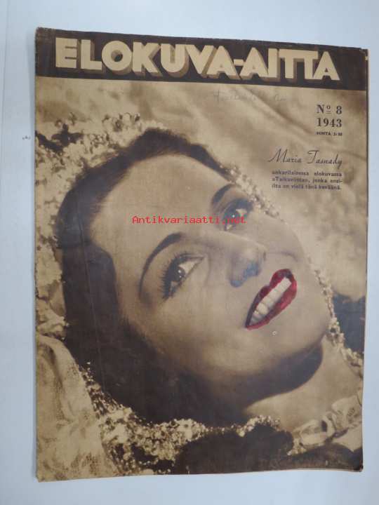 Elokuva-Aitta 1943 nr 8 Kansikuva Maria Tasnady, Kristiina Söderbaum käynnillä kotimaassaan, Linda Darnell, Jean Gabinin valloitusretket, Regina Linnanheimo, ym.