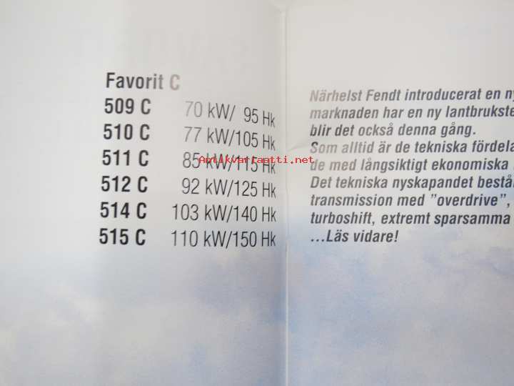 Fendt Favorit 509 C, 510 C, 511 C, 512 C, 514 C, 515 C tractor / traktori -myyntiesite, englanninkielinen / sales brochure, in english