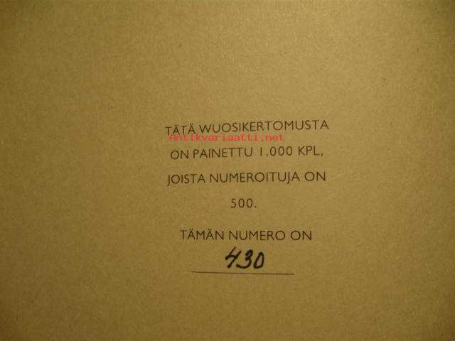 | Saatavilla | 1 kpl | | Sivuja | 112 | | Kunto | K4 | | Sidonta/painoasu | Sidottu (kovak.) | | Kielet | Suomi |