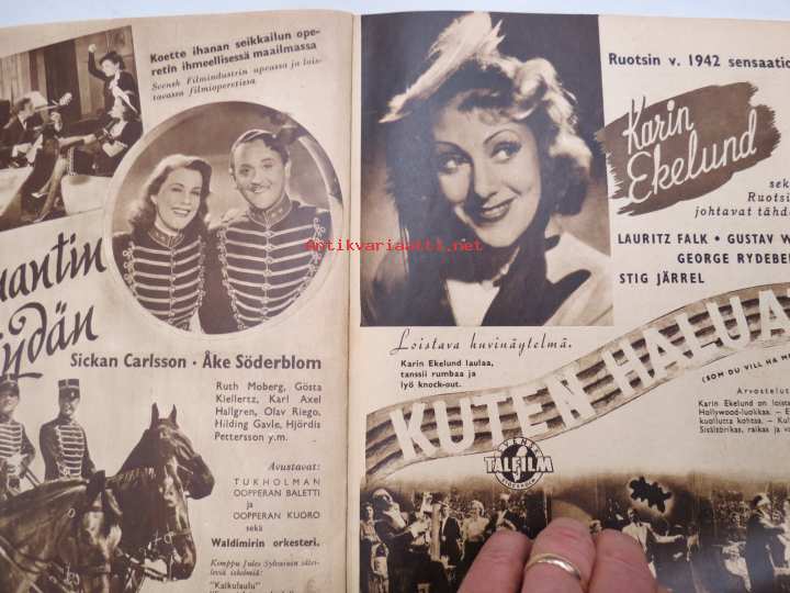 Elokuva-Aitta 1944 nr 1, Kansikuva Regina Linnanheimo, Dolly alfthan, Vaivaisukon morsian, Edvin Adolphson, Maurice Chevalier, Alice Babs, ym.