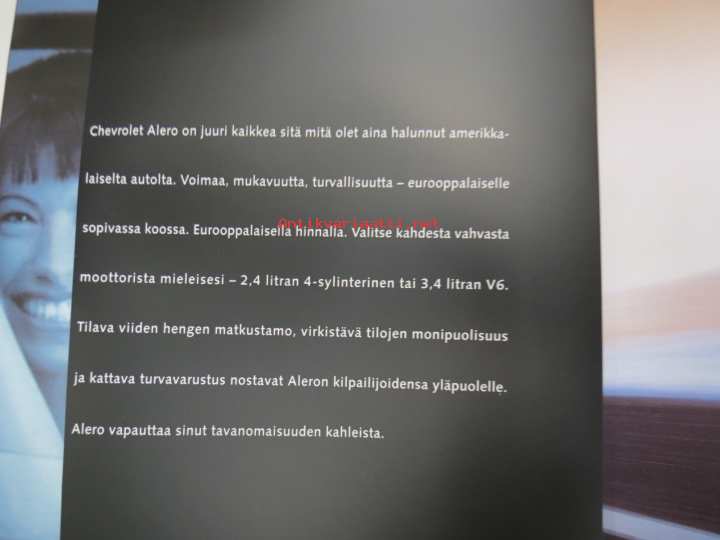 Chevrolet Alero -myyntiesite, suomenkielinen / sales brochure, in finnish