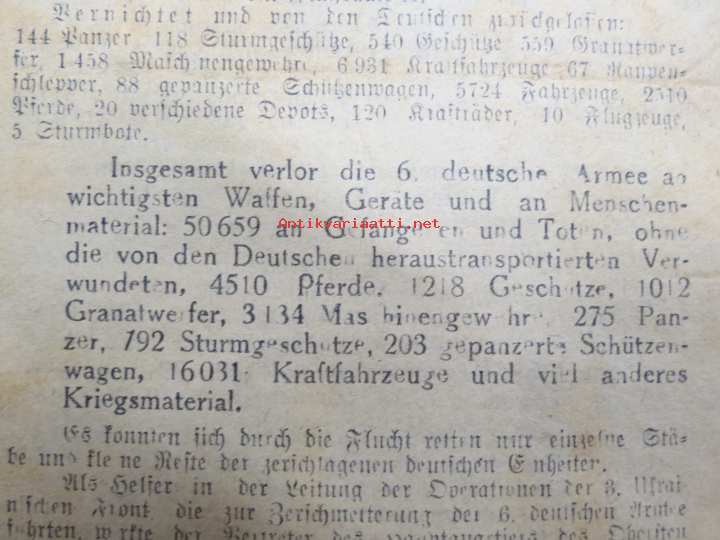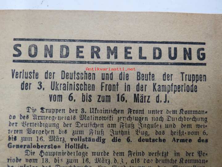 Sondermeldung - Verluste der Deutschen und die Beute der Truppen der 3. Ukrainischen Front... -venäläisten lentolehtinen saksalaisille