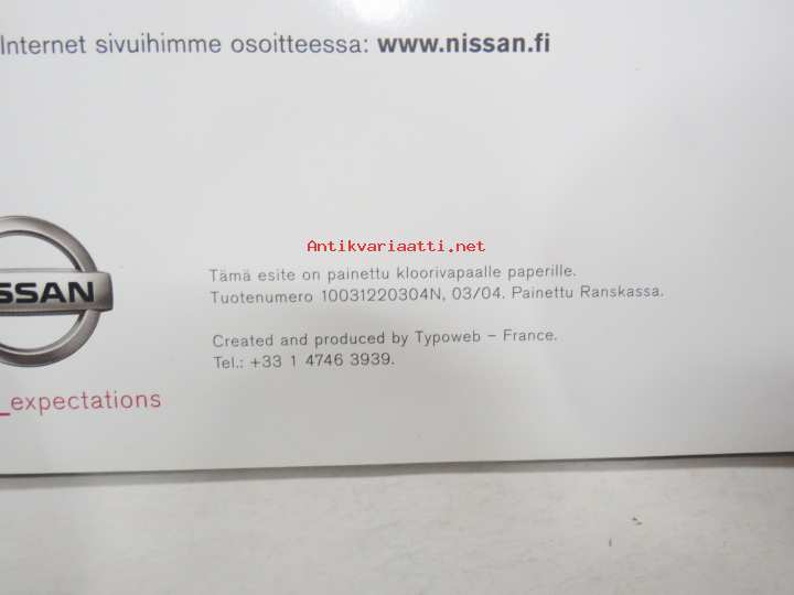 Nissan Almera Tino 2004 -myyntiesite / sales brochure