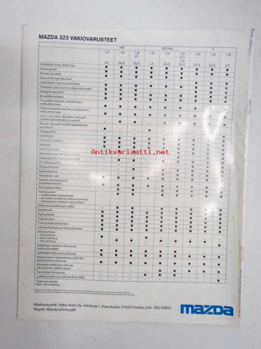 Mazda 323 Hatchback 3-ov. / Sedan, 4-ov. / Farmari 5 ov. 1992 -myyntiesite / sales brochure