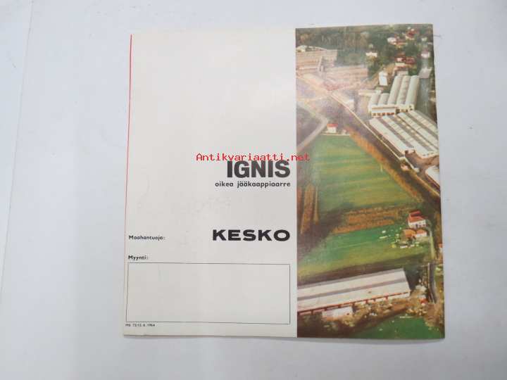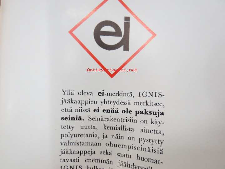 Ignis -jääkaappi -myyntiesite / fridge sales brochure