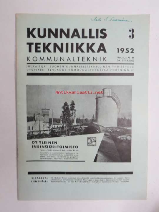 Suomen Kunnallisteknillinen Yhdistys, 195221 x 30 cm.