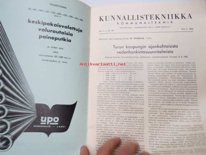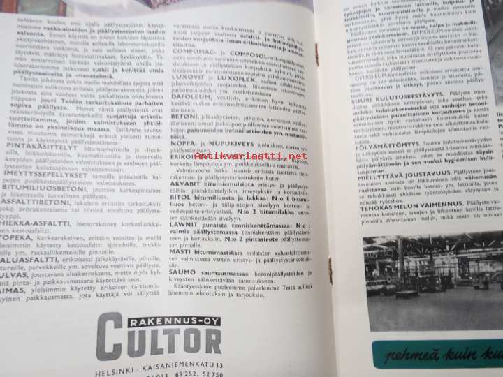 Kunnallistekniikka 1952 nr 3, Cultor asfalttipäällysteet, Dymoleum kumiasfaltti, Leo Gottwald yleiskaivukone mainos, ym.