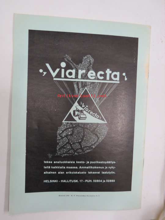 | Saatavilla | 1 kpl | | Julkaisuvuosi | 1952 | | Sivuja | 24 | | Kunto | K3 | | Sidonta/painoasu | Lehti | | Kielet | Suomi |