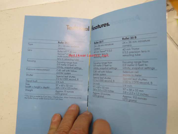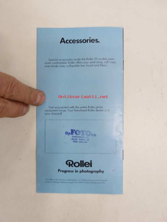 Rollei - Compact precision - 35 S, 35 T, 35 B camera -brochure / myyntiesite, englanninkielinen