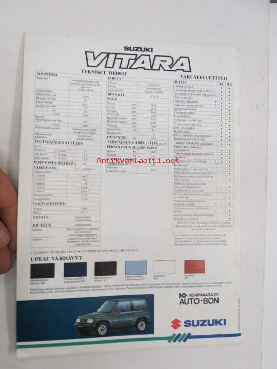 Suzuki Vitara -myyntiesite / sales brochure, in finnish