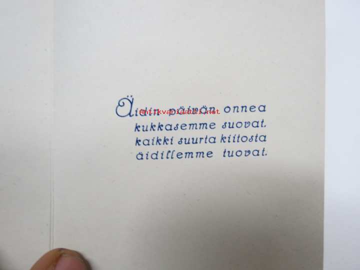 Äidille - Äitienpäivä - Äitienpäiväkortti 1940-luvulta; Äidin päivän onnea kukkasemme suovat - Kaikki suurta kiitosta äidillemme tuovat