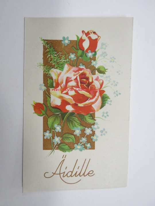 9 x 14 cm, alkuperäinen taittokortti, paperialan tukkukaupan säilynyttä vanhaa varastoa.