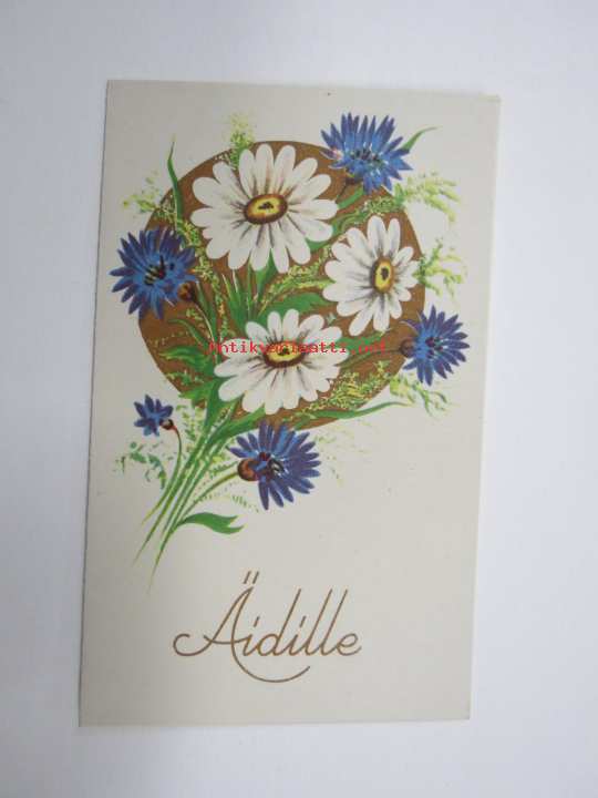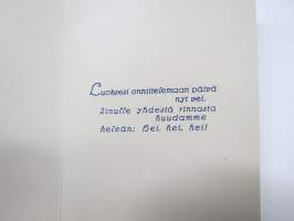 Äidille - Äitienpäivä - Äitienpäiväkortti 1940-luvulta; Luoksesi onnittelemaan päivä nyt vei. sinulle yhdestä rinnasta huudamme heleän; hei, hei, hei!