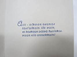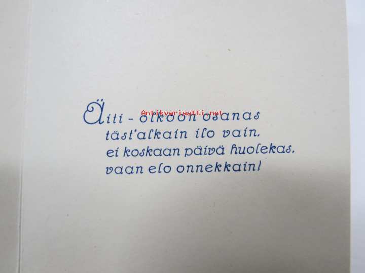 Äidille - Äitienpäivä - Äitienpäiväkortti 1940-luvulta; Äiti - olkoon osanas täst´alkain ilo vain, ei koskaan päivä huolekas, vaan elo onnekkain!