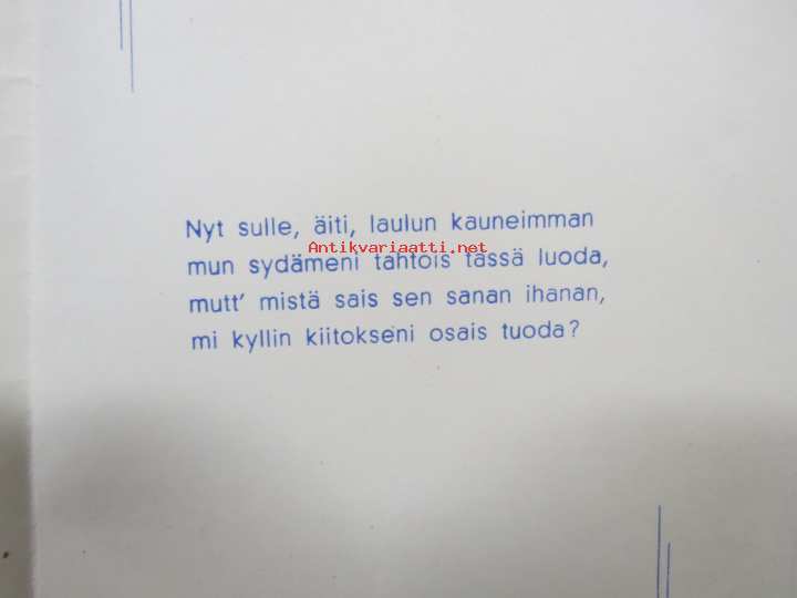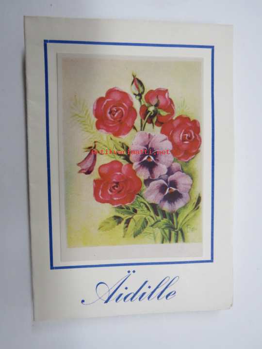 Äidille - Äitienpäivä - Äitienpäiväkortti 1940-luvulta; Nyt sulle, äiti, laulun kauneimman mun sydämeni tahtois tässä luoda, mutt´mistä sais sen sanan ihanan...