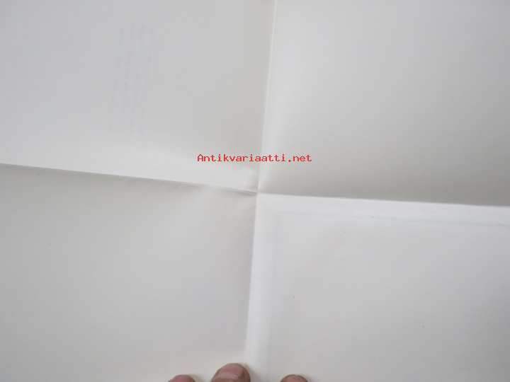 11 x 16 cm, alkuperäinen taittokortti (arkkitaitos), paperialan tukkukaupan säilynyttä vanhaa varastoa.