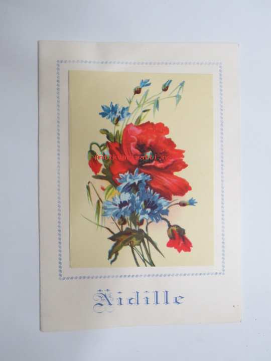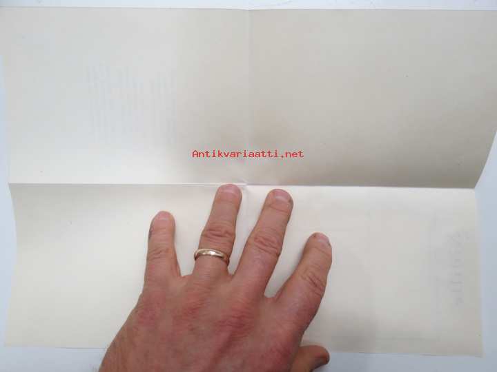 11 x 16 cm, alkuperäinen taittokortti (arkkitaitos), paperialan tukkukaupan säilynyttä vanhaa varastoa.