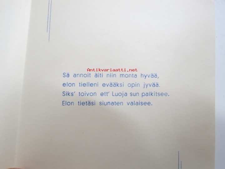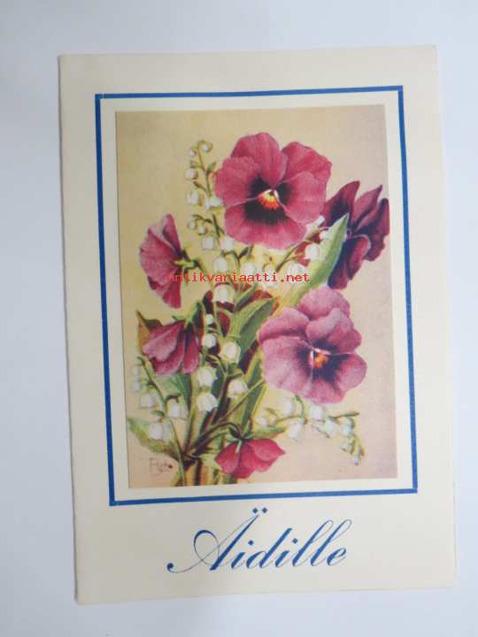 Äidille - Äitienpäivä - Äitienpäiväkortti 1940-luvulta; Sä annoit äiti niin monta hyvää, Elon tielleni evääksi opin jyvää, Siks´toivon ett´Luoja sun palkitsee...