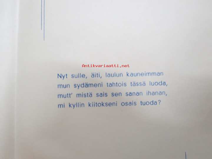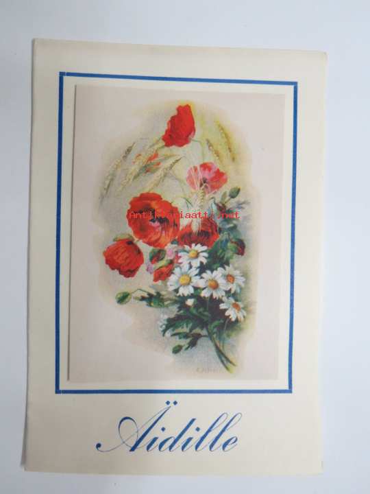 Äidille - Äitienpäivä - Äitienpäiväkortti 1940-luvulta; Nyt sulle, äiti, laulun kauneimman mun sydämeni tahtois tässä luoda, mutt´mistä sais sen sanan ihanan...