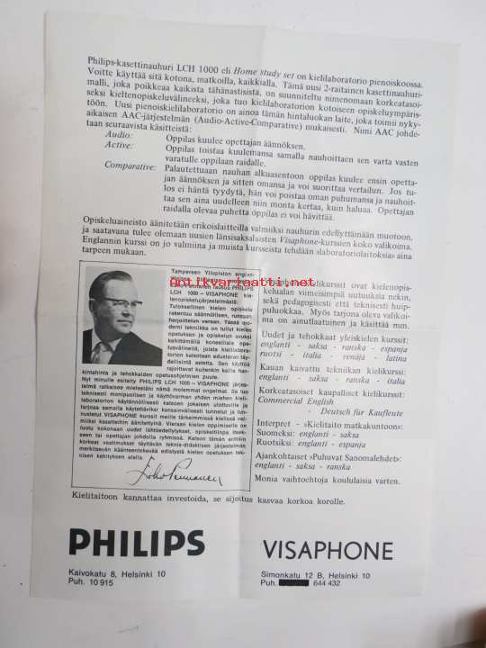 Philips LCH 1000 Visaphone pienoiskielilaboratorio - kielenopiskelujärjestelmä -myyntiesite / sales brochure