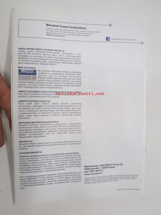 Mitsubishi Outlander 2014 -myyntiesite / sales brochure
