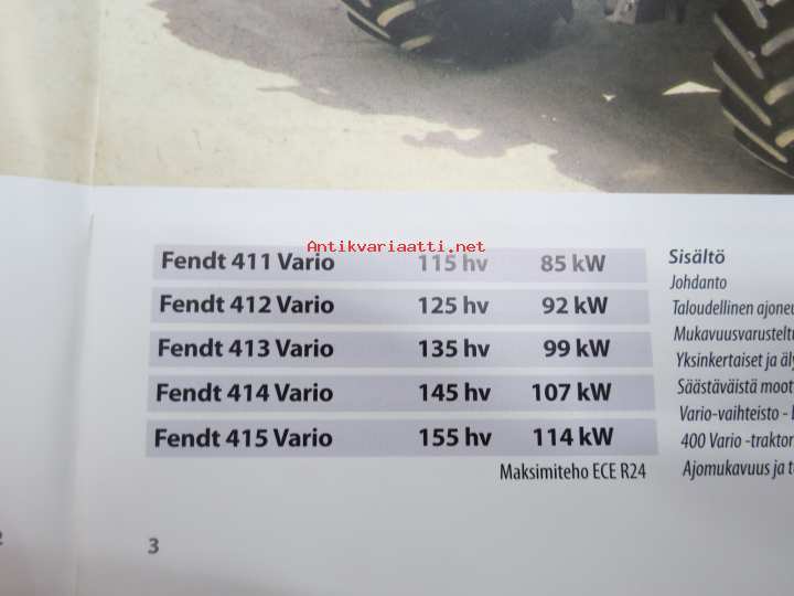 Fendt 400 Vario traktori -myyntiesite, suomenkielinen / tractor sales brochure, in finnish