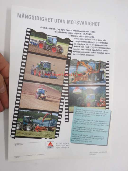 Fendt Xylon 520, 522, 524 traktori -myyntiesite, ruotsinkielinen / tractor sales brochure, in swedish