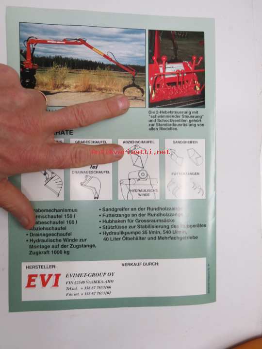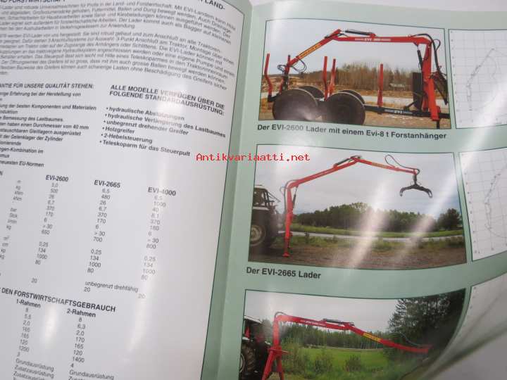 EVI Forstwirtschaftsmaschinen -forestry / farming equipment sales brochure, in german / myyntiesite, saksankielinen