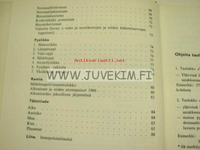 | Saatavilla | 1 kpl | | Julkaisuvuosi | 1970 | | Sivuja | 85 | | Painos | 2. | | Kunto | K3 | | Sidonta/painoasu | Sidottu (kovak.) | | Kielet | Suomi |