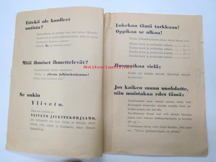 Yliveto - Jalkinekorjaamo - Merimiehenkatu 20, Helsinki -esite