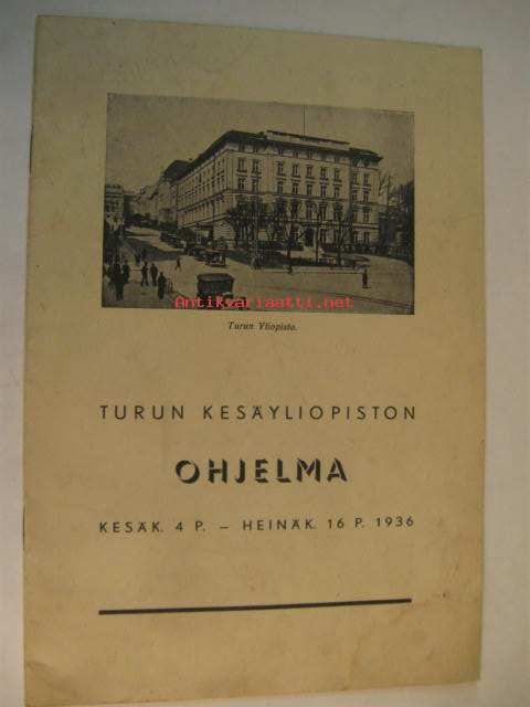 Turun Kesäyliopiston ohjelma kesäkuun 4 p. -heinäkuu 16.9. 1936