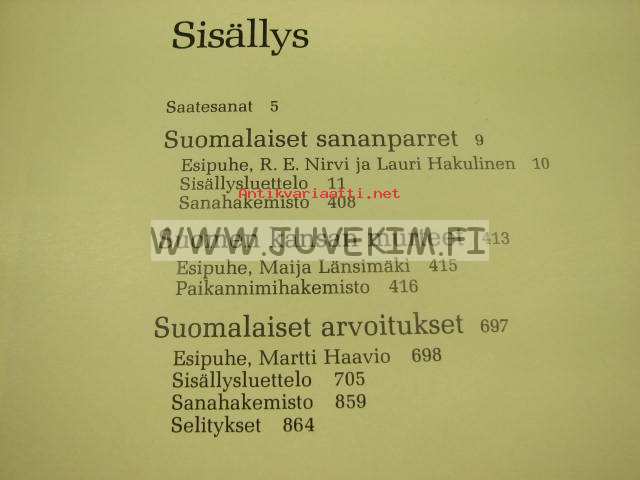 Vanhankansan kirja Suomalaiset sananparret, Suomen kansan murteet, Suomalaiset arvoitukset