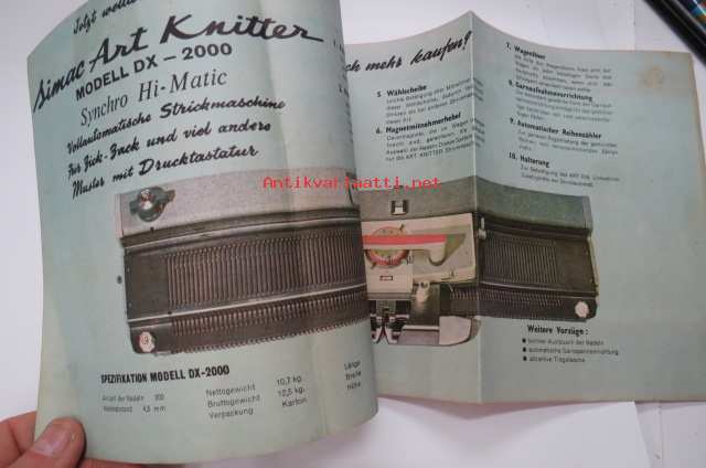 Simac Art Knitter DX-2000 Syncro Hi-Matic Vollautomatische Strickmaschine -täysautomaattinen intialainen neulekone -myyntiesite / sales brochure