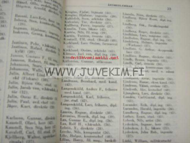 | Saatavilla | 1 kpl | | Julkaisuvuosi | 1944 | | Sivuja | 121 | | Painos | 1. | | Kunto | K2 | | Sidonta/painoasu | Nidottu (pehmeäk.) | | Kielet | Ruotsi |